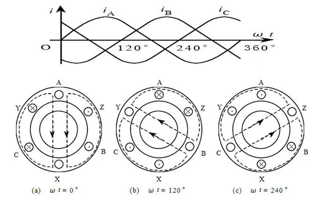 三相交流電機每組線圈都會產生N、S磁極,每個電機每相含有的磁極個數就是極數。由于磁極是成對出現的,所以電機有2、4、6、8……極…… |