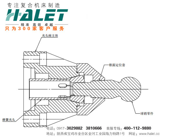 用彈簧夾頭直接加持工件屬于彈性夾持,夾持剛性不高,用自身定位夾持精度不穩定,從而影響工件的加工效果。針對帶錐面的球銷類零件有一種特殊的夾持方式,其夾持剛性高,夾持精度穩定,可滿足高剛性的切削。