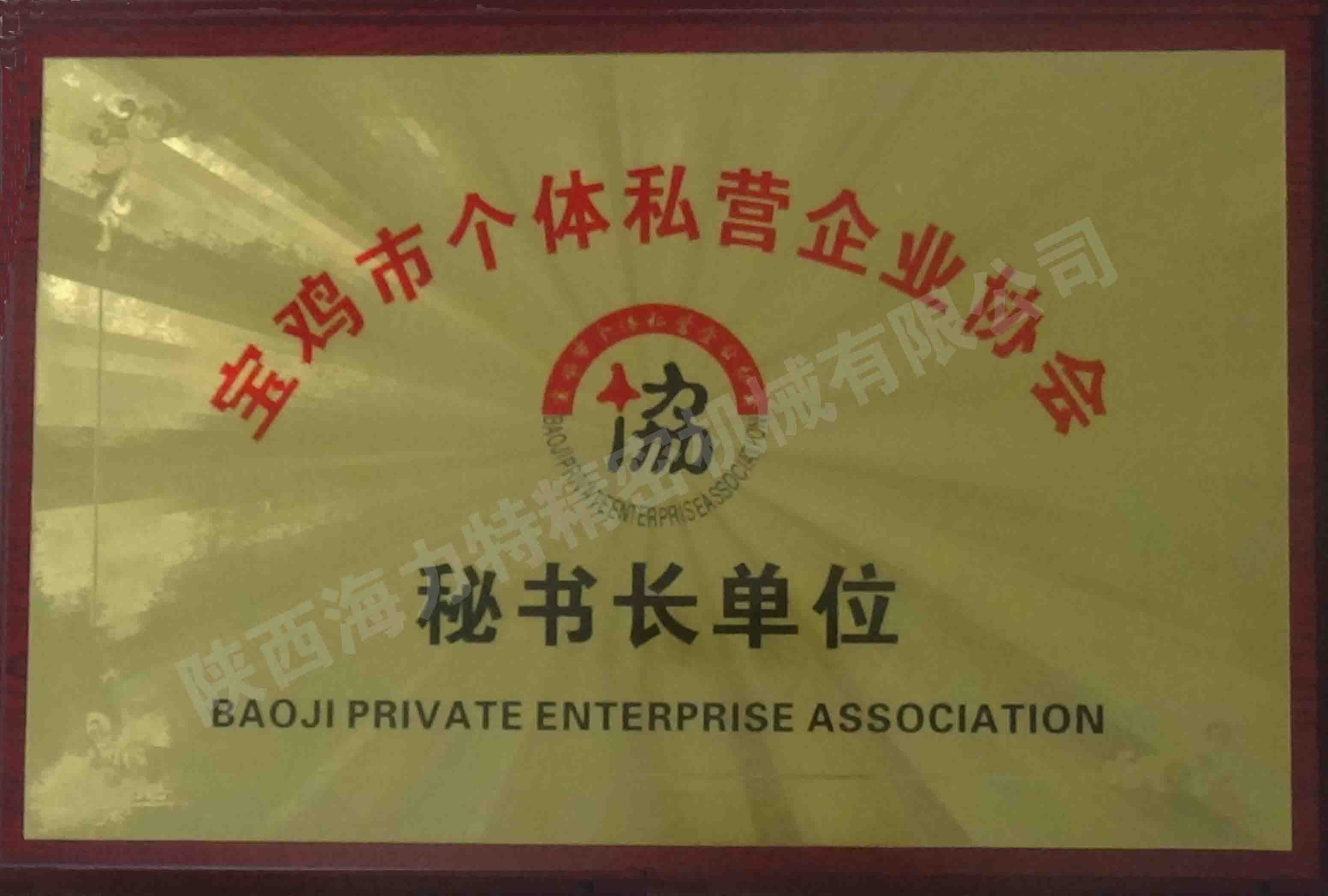 近日,陜西海力特精密機械有限公司被寶雞市個體私營企業協會授予“秘書長單位”稱號!  ……