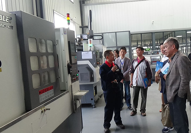 10月19日上午十時許,在我市工業園園區管委會數位領導的陪同下,臺灣商會考察調研組數十位企業家蒞臨我公司參觀、調研,尋求合作機會。公司董事長李紅軍陪同參觀并就我公司專利產品HNC-500Z及HQ-50P數控球面車床做了詳盡介紹和現場加工演示,考察團對我公司規范的6"S"現場管理,精準的過程管控表示了高度認同和一致肯定,尤其對HQ-50P球面車床產生了濃厚的興趣,詢問很多技術問題,同時,數位臺商就后期合作表達的初步意向。