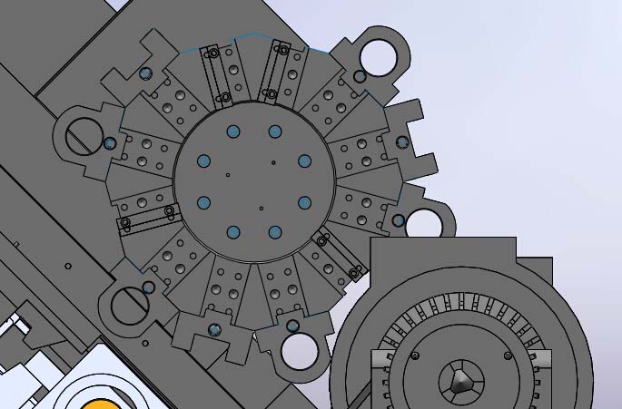 12工位液壓刀塔設計,定位準確,換刀速度快。★45度斜床身結構
